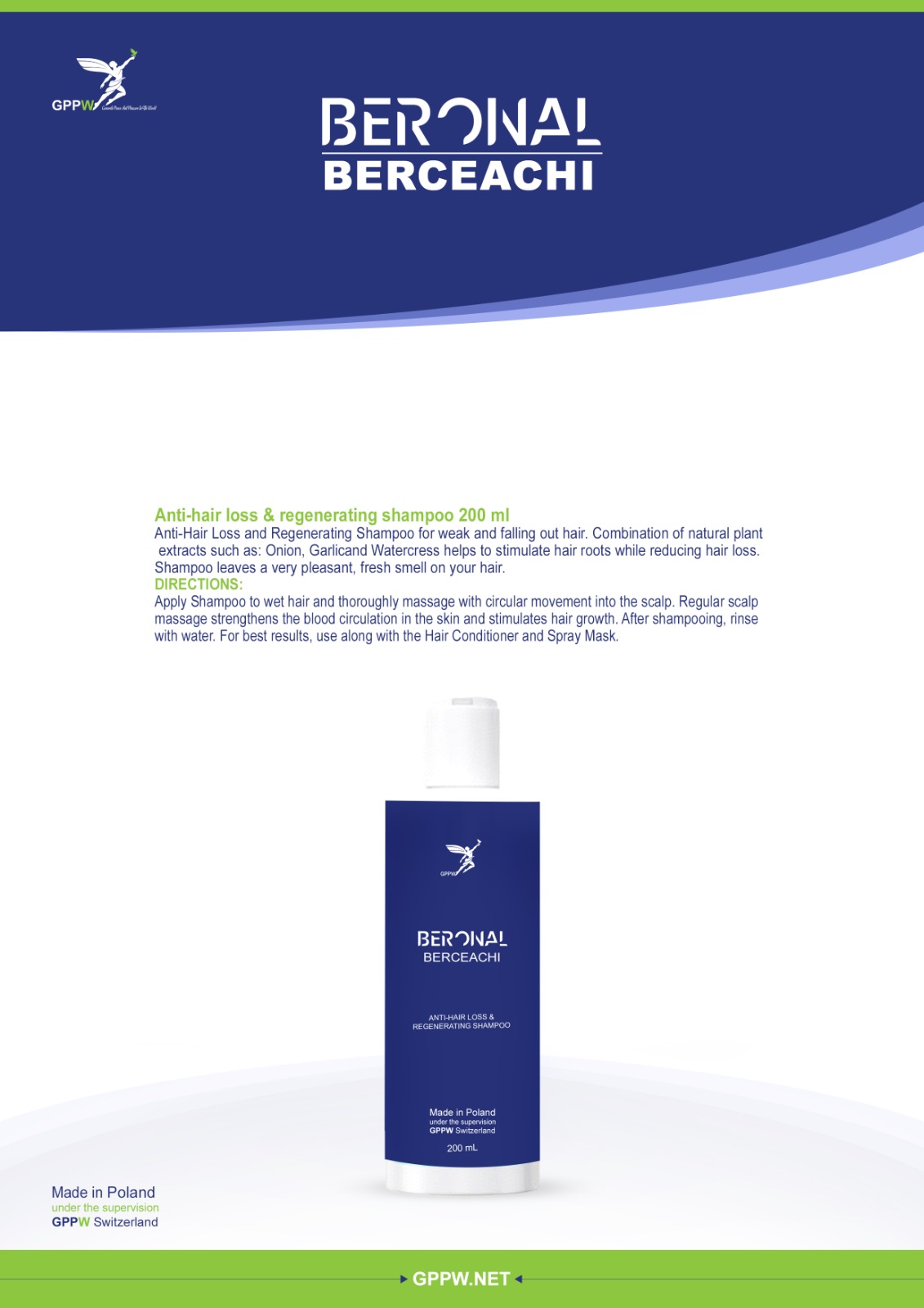 Anti-Hair Loss and Regenerating Shampoo for weak and falling out hair. A combination of natural plant extracts such as: Onion, and Garlicand Watercress helps to stimulate hair roots while reducing hair loss. The shampoo leaves a very pleasant, fresh smell on your hair.