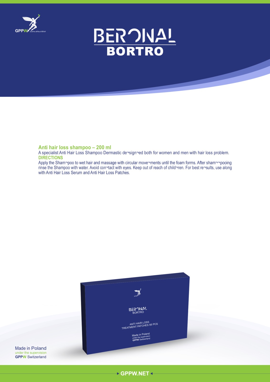 DIRECTIONS 1. Ensure that the patch application area is clean and dry. 2. Take out one of the sheets, separate one patch, and stick it to the chosen skin area. 3. The patch must remain fixed on the skin for 8 to 10 hours (overnight) and be carefully removed after this time (in the morning). 4. Apply the product rotationally, covering the whole perimeter of the bald scalp (recommended areas: forehead, temples, behind ears, top of the scalp, nape). 5. Following night, apply the product again changing the application area. 6. 8-week program.